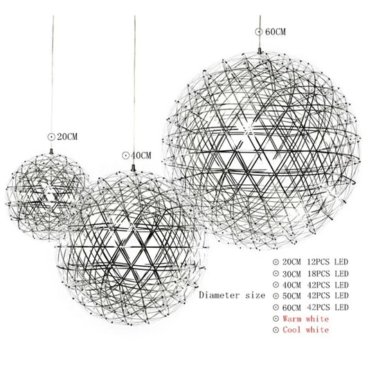 Modern Brief Loft Spark Ball LED Chandelier Fixture Firework Ball Stainless Steel Pendant Lamp for Home Decor Lighting 110-240V