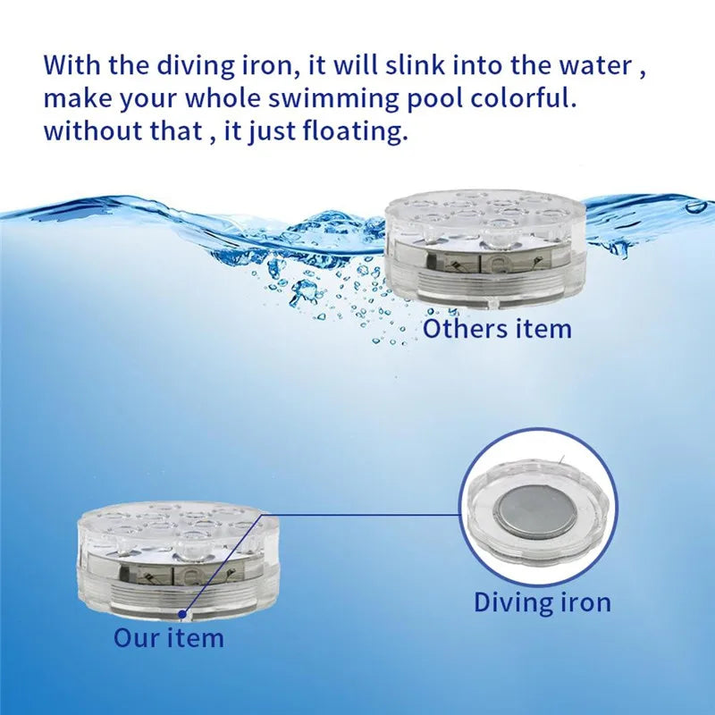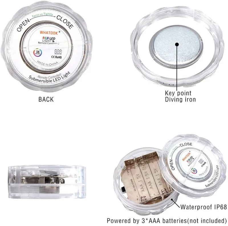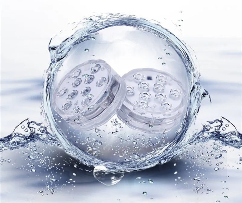 Create stunning lighting effects for any occasion with the 10 LEDs RGB Submersible Light — a battery-operated waterproof lamp perfect for swimming pools, vases, aquariums, weddings, and garden decor. Its vivid RGB color modes and compact design let you transform your space instantly with vibrant, customizable illumination.