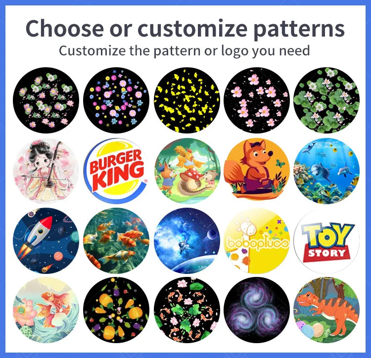 🎨 Customizable Gobo Images – Rotate and project logos, designs, or promotional visuals