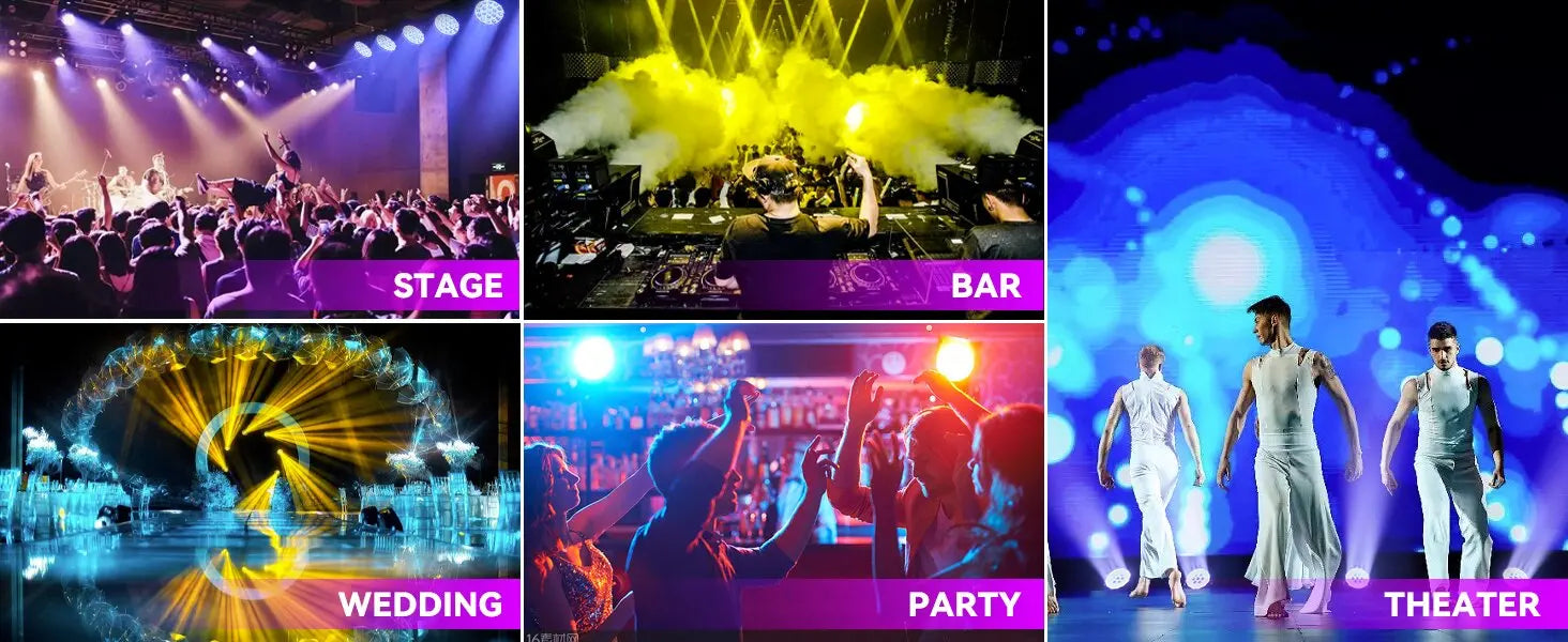 Occasions: DJ events, discos, bars, weddings, concerts, parties, and stage performances