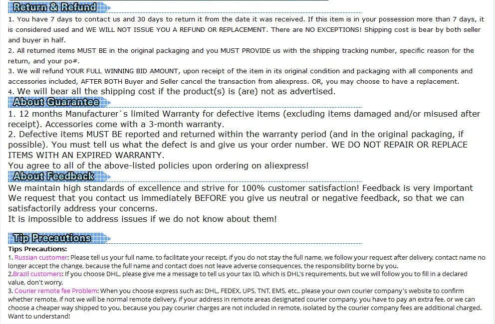 Change your mind? No problem! Return it less shipping back to us for a full refund. We will accept a return within 30 days of you receiving it. We only ask that the customer covers the return shipping. We do request that the product is returned in 30 days & in the same condition it was sent. Our warehouse team will inspect the item prior to refund. We will always find the best price for you when it comes to return shipping.