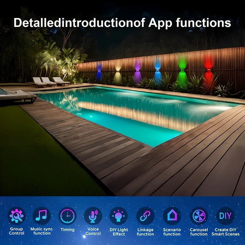 Smart Outdoor Light String 300 Ft RGBIC with 16 Million Color Options. Transform your outdoor space with this professional-grade LED light string system. Featuring 300 feet of coverage, this RGBIC setup delivers 16 million customizable colors with dimmable warm white functionality for versatile ambiance control. The included LED bulbs produce exceptional brightness at over 82,000 lumens, ensuring reliable illumination across gardens, patios, and landscaping applications. AC-powered for consistent performance, this system combines smart app control with straightforward assembly installation. Ideal for creating dynamic outdoor environments that adapt to any occasion or season.